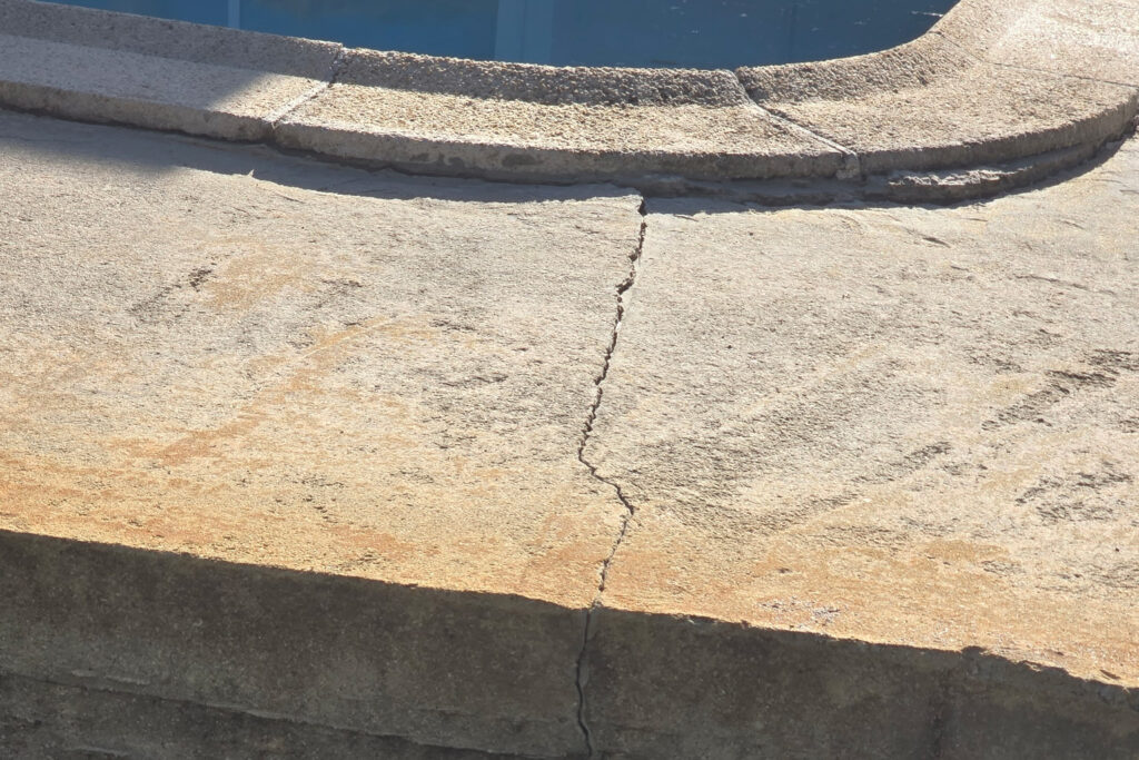 Soggy spots or sinkholes around the pool deck often indicate water escaping underground.